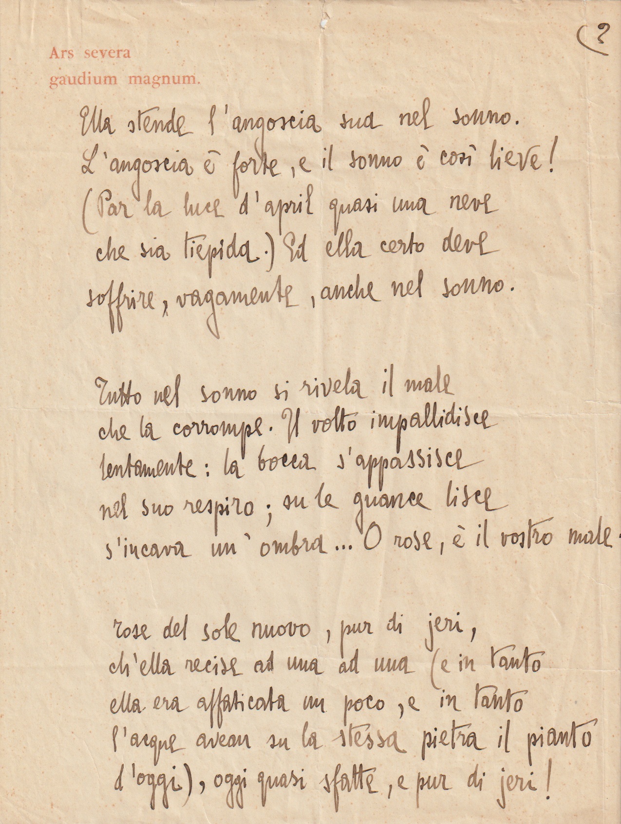 s’incava un’ombra… O rose, è il vostro male: