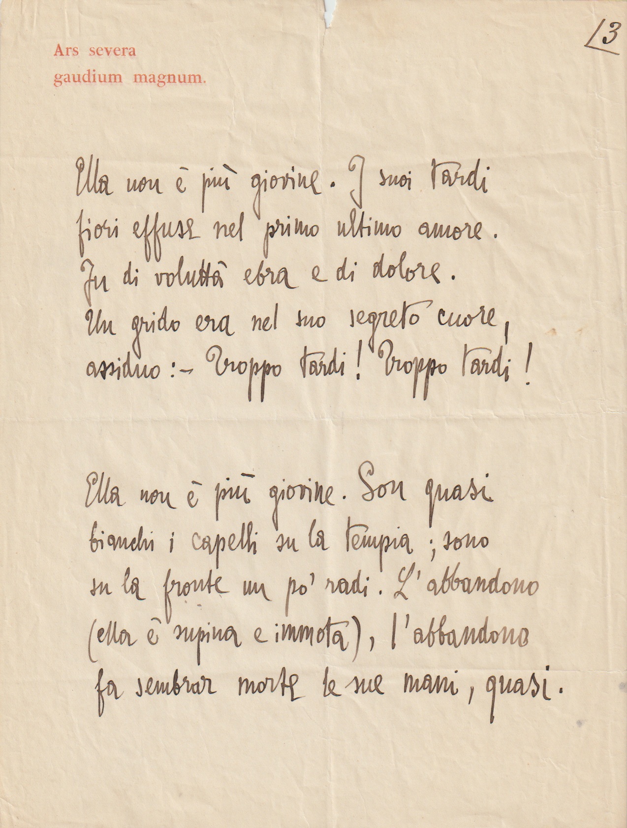 Ella non è più giovine. I suoi tardi