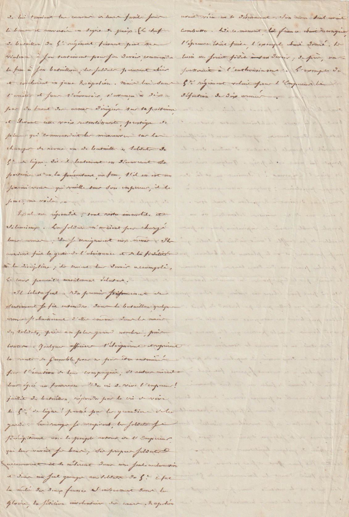 On joint un feuillet autographe du Mamelouk Ali recopiant un extrait de l’ouvrage de Lamartine sur le célèbre épisode du 5e régiment de ligne non loin de Grenoble lors du retour de l’Aigle.